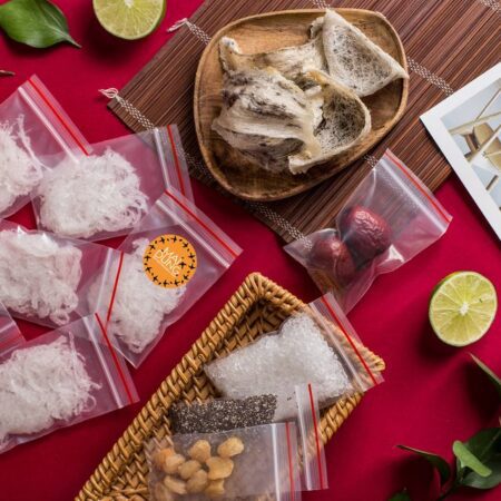 CHI TIẾT SẢN PHẨM QUÀ TẶNG KÈM 1 combo vị chưng kèm táo đỏ + long nhãn + hạt chia + hạt sen,1 hộp đường phèn.